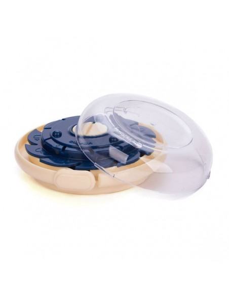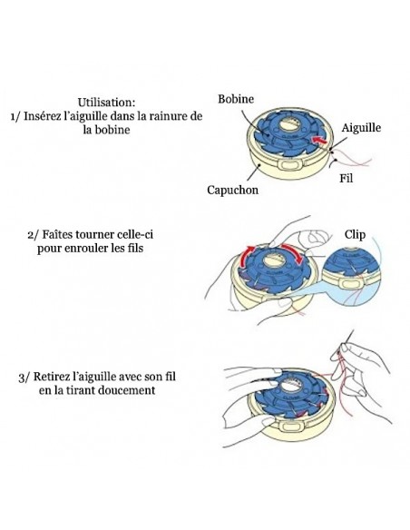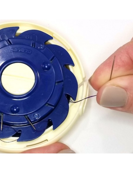 Ce type de porte-aiguilles peut contenir jusqu'à 10 aiguilles enfilées et permet de placer les fils enroulés à l'intérieur sans que ceux-ci ne s’emmêlent ou ne s'entortillent.