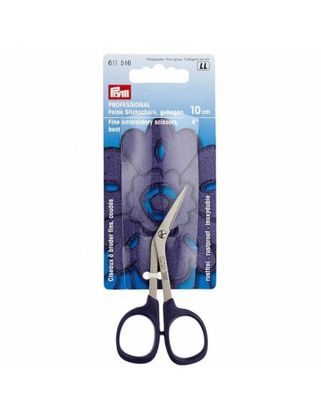 Ciseaux à broder à lames coudées par rapport au manche, permettant une découpe ultra précise.