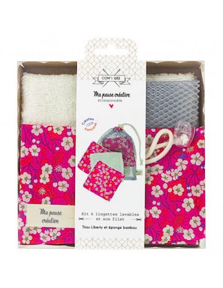 Kit complet pour confectionner 6 lingettes démaquillantes lavables en tissu éponge viscose de bambou et tissu Liberty 100% coton, ainsi que leur filet de lavage!