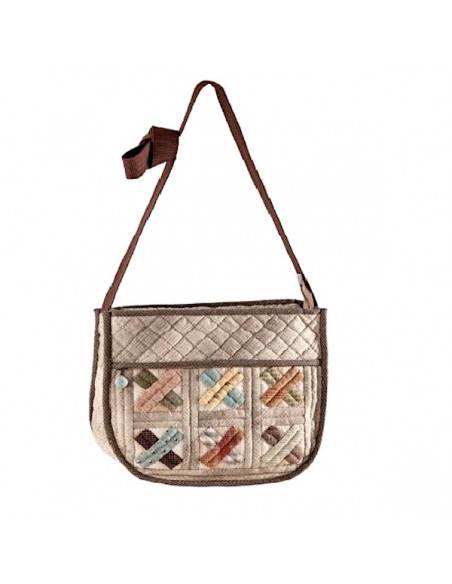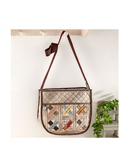 Kit complet pour réaliser une besace à bandoulière en patchwork appliqué, modèle conçu par la créatrice japonaise Akemi Shibata.
