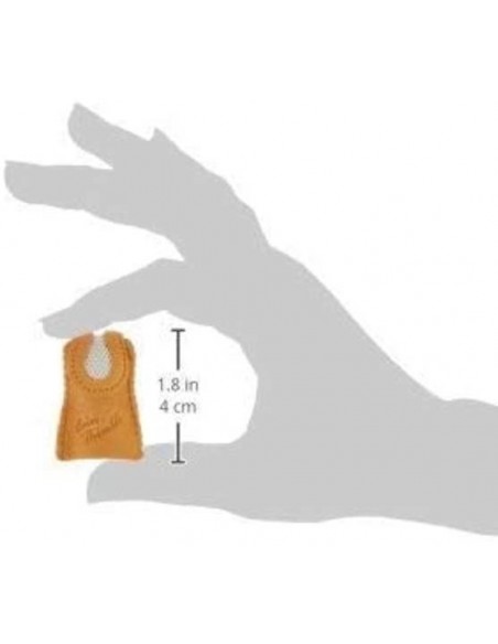 Dé en cuir véritable doux et souple avec renfort métallique qui protège tout le bout du doigt, de l'ongle à la partie charnu, ainsi que le dessous du doigt.