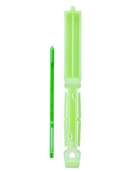 Le passe-lacet est muni d'un chas rainuré de 1" de long (2.5 cm environ) retenant fermement l'élastique.