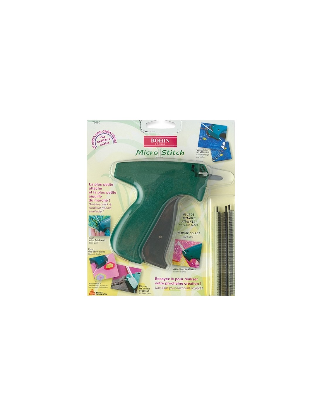 Ce pistolet à bâtir "MicroStitch" vous permettra de gagner du temps au moment du bâti de votre quilt ou de la fixation de petites pièces à appliquer.