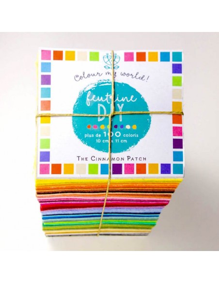 Voici un lot contenant 123 couleurs de feutrine au format 10 x 11 cm, représentant la gamme complète "The Cinnamon Patch" créée par Marianne Byrne Goarin.