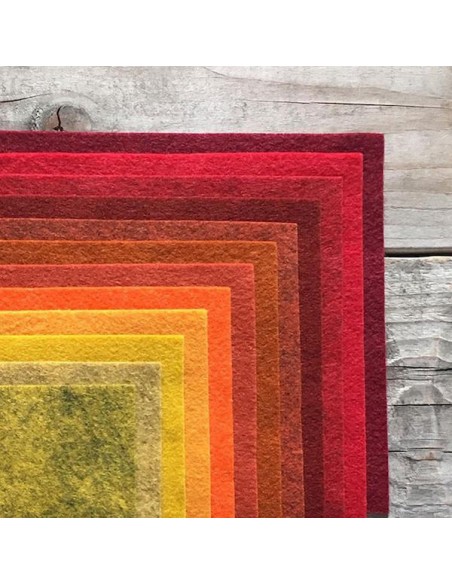 Assortiment de 12 carrés de Feutrine de laine, couleur "Tango".
