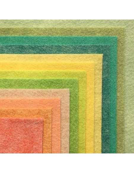 Assortiment de 12 carrés de Feutrine de laine, couleur "Sorbet".
