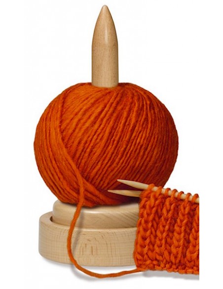 Ce support en bois de hêtre est pourvu d'un roulement à bille pour un déroulement sans à-coups et sans vrille de votre pelote de fil pendant que vous tricotez.