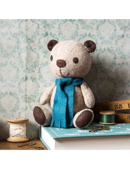 Kit feutrine de la créatrice Corinne Lapierre, présenté dans une boîte en carton recyclé, pour réaliser un ourson en 3d au style vintage.