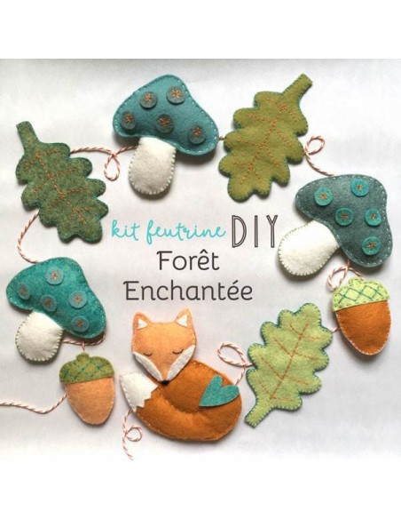 Kit complet pour réaliser une belle Guirlande d'automne en feutrine à suspendre, agrémentée de champignons, de feuilles de chêne et d'un petit renard!