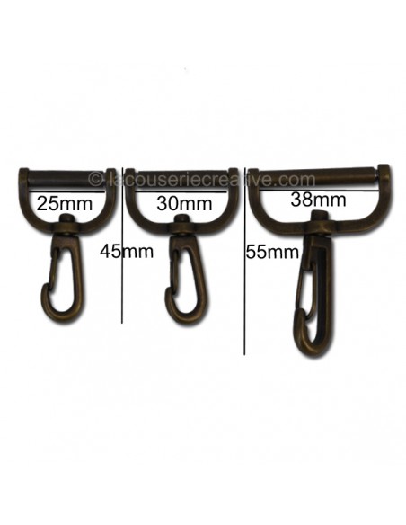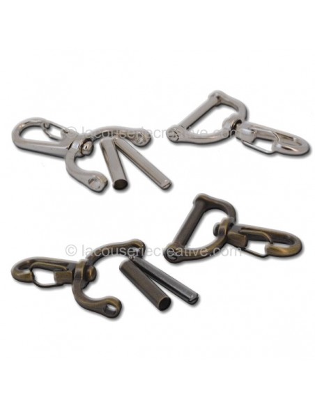 Lot de 2 mousquetons avec étriers pivotants ouvrables (barre dévissable) pour changer facilement votre sangle ou anse de sac!