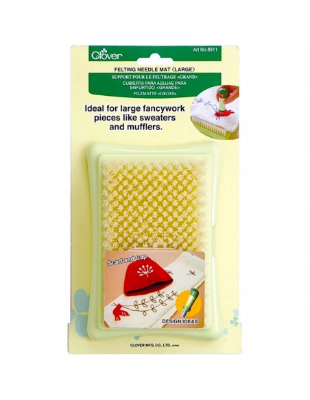 Cette brosse pour l'appareil à feutrer (ou "embellisher") permet d’obtenir un motif appliqué en relief et diminue le risque de casser les aiguilles de l'outil en amortissant les perforations.