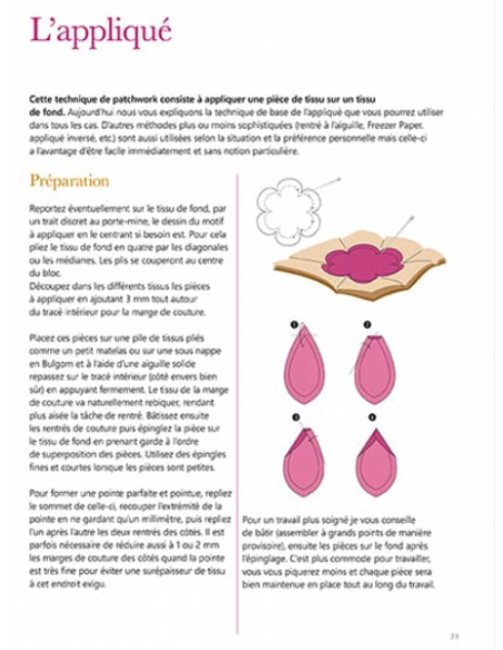 C'est un manuel pratique à spirales permettant d'apprendre tout ce qu'il faut savoir sur cette technique de couture passionnante: choix du matériel, appliqué, découpe, assemblage, finitions...