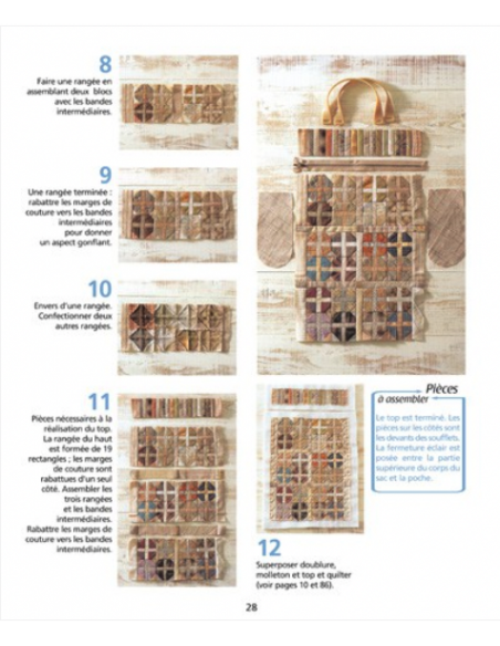 En 13 leçons, apprenez 13 techniques essentielles à la base du patchwork et réalisez 13 accessoires: trousse, bourse, sac, coussin, vide-poche, plaid, maison en 3 D...
