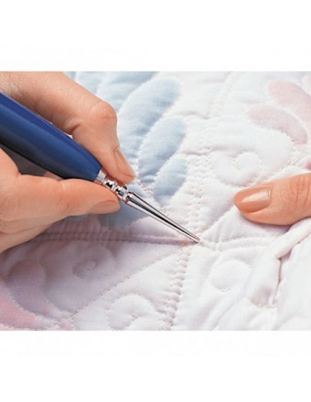 Il est utile pour démêler les fils, insérer le tissu sous le pied de biche, la technique du bourrage en boutis, percer des trous dans les tissus très fins et fragiles, confectionner des angles parfaits...