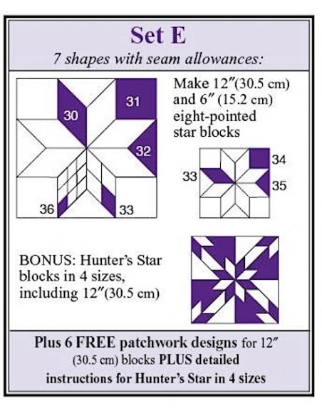 Précis et faciles à utiliser, ces gabarits créés par Marti Michell ont été conçus pour faciliter la méthode d'assemblage "point par point" et pour plus de précision tant pour le traçage que pour la découpe au cutter rotatif.
