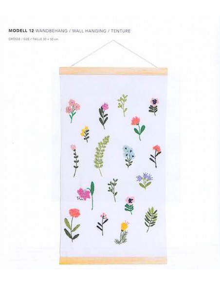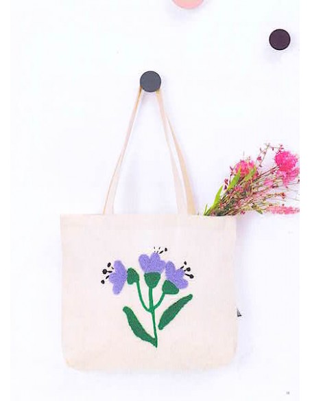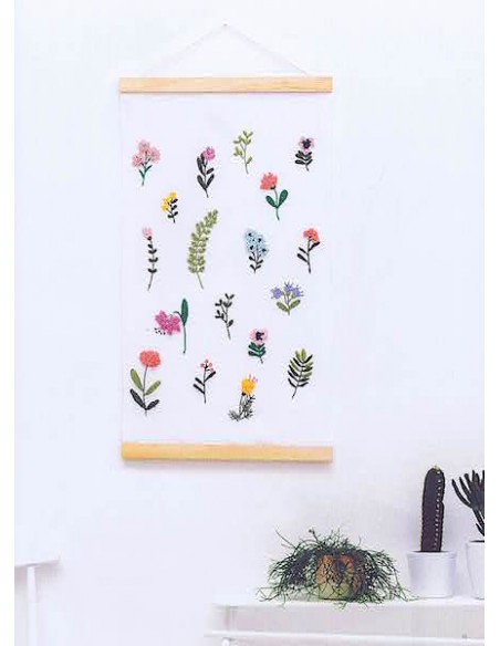 Cahier contenant 17 modèles aux motifs printaniers à réaliser à l'aiguille à puncher "Oxford Punch Needle" (ou autre marque), ainsi que 13 modèles plus délicats, à puncher avec une aiguille plus fine type "Appareil à broder" réf. 8800 de Clover, pour broder avec des fils fins tels que le coton mouliné.