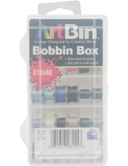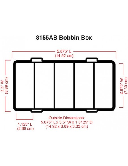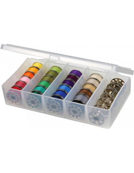 Boîte dotée de 5 compartiments fixes pour ranger vos canettes de machine à coudre (30 canettes maximum) ou autres petits accessoires tels que les paquets d'aiguilles ou les boutons par exemple.