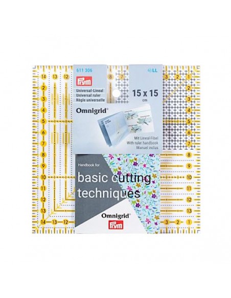 Règle carrée universelle pour le patchwork et la couture, graduée en centimètres, pour une découpe nette et en toute sécurité avec un cutter rotatif.