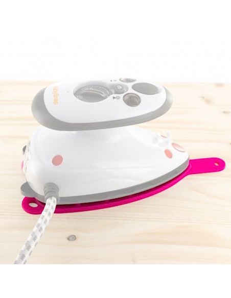 Repose-fer à repasser en silicone souple pour mini-fer à repasser (Prym réf. 611915 ou BabySnap réf. 16349), doté d'une face à picots qui agripperont la semelle du fer.