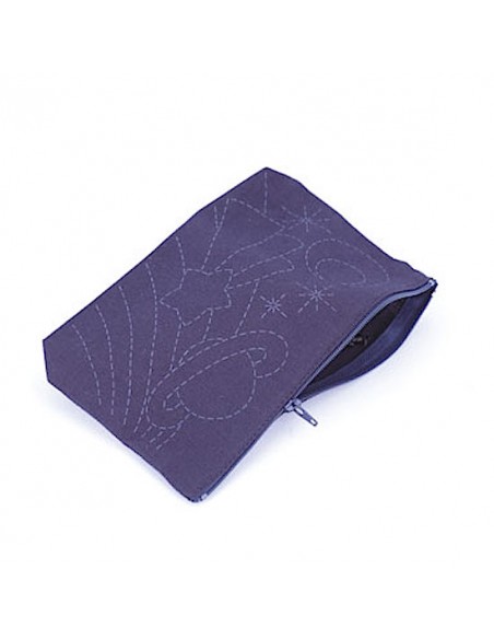 Kit de broderie Sashiko pour réaliser une pochette* brodée de motifs cosmiques aux couleurs douces (design: Tomoe Shinohara).