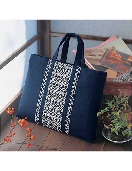 Ce Kit de broderie Kogin vous permettra de réaliser un joli sac* "Take-no-fushi".