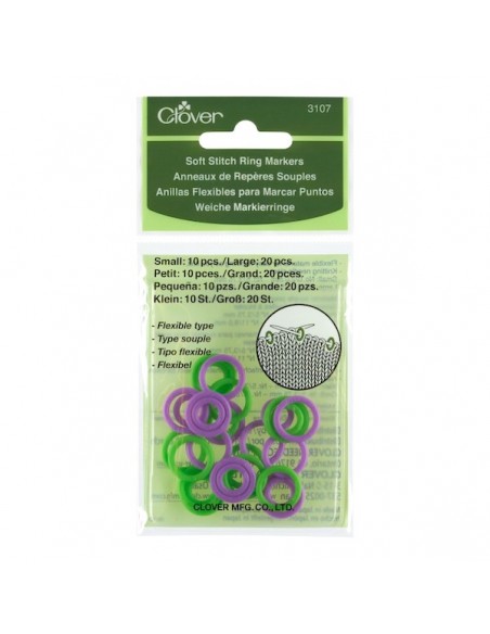 Anneaux pour repérer l'emplacement des mailles sur un tricot. Leur matière souple permet de tricoter sans gêner les gestes.