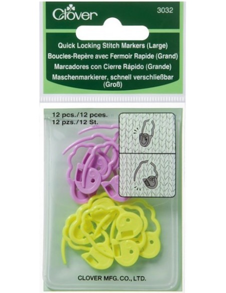 De par leur conception ondulée, ces boucles-repère à fermeture rapide préviendront l'étirement des mailles tricotées et peuvent aussi être utilisées en position ouverte.