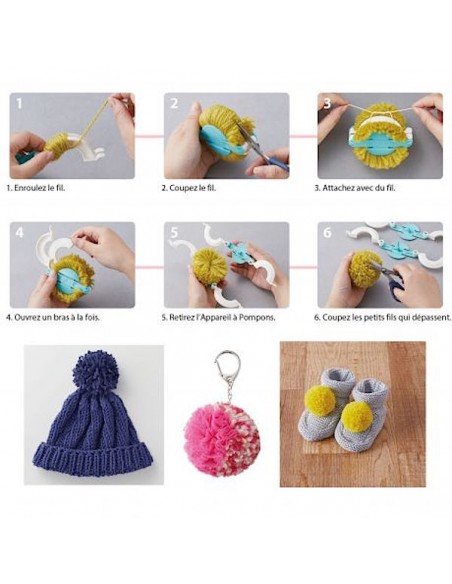 Avec ce lot de 4 appareils, vous pourrez créer très facilement de beaux pompons de 35 mm, 45 mm, 65 mm et 85 mm de diamètre que vous utiliserez pour personnaliser vos créations!