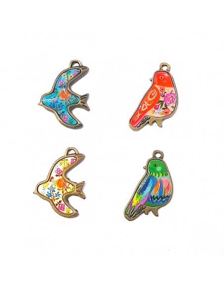 Jolis petits pendentifs métalliques en forme d'oiseau, à l'aspect laqué, pour personnaliser vos créations.